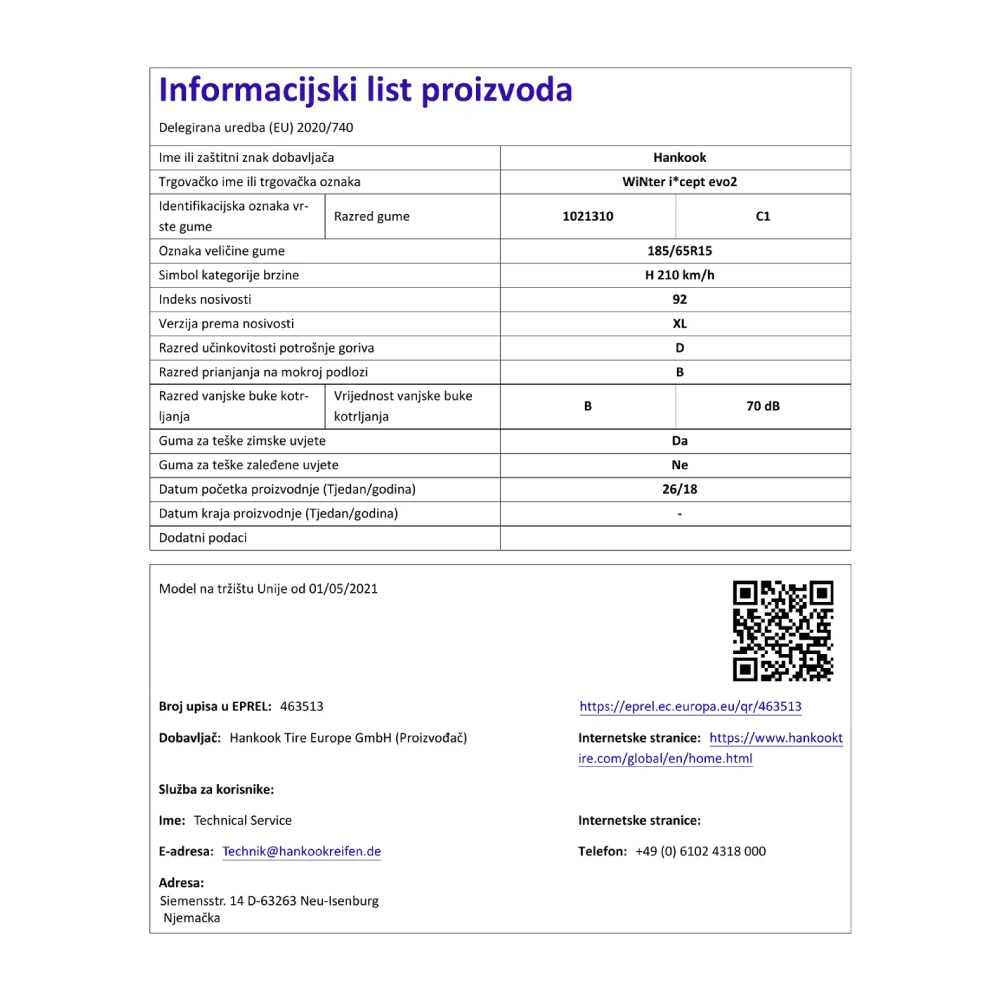 Budite prvi koji će recenzirati “Guma185/65R15 92H WINTER I. EVO 2 W320 XL TL Hankook”