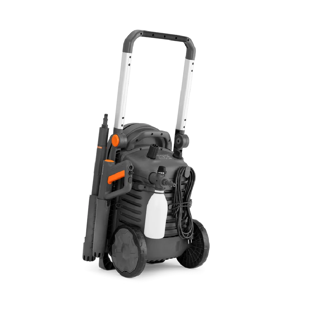 Doživite svestrani Husqvarna PW 360 visokotlačni perač i iskoristite pametne značajke za jednostavno čišćenje vanjskih površina. S novim 3-u-1 Multi-Lance, možete brzo mijenjati različite zadatke, jer je moguće promijeniti mlaznicu samo jednim klikom. Ima dugu, fleksibilnu cijev za produženi doseg i jednostavno rukovanje te novi vrhunski raspršivač pjene s poboljšanom prilagodbom pjenjenja i ventilatora. Pouzdan indukcijski motor visokih performansi i metalna pumpa minimaliziraju kvarove i pružaju vrhunske performanse.