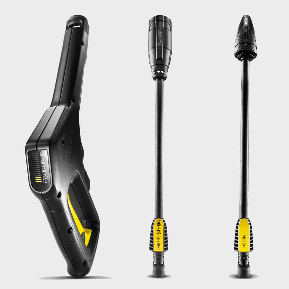 Odgovarajuću razinu tlaka za dotičnu primjenu moguće je postaviti izravno na mlaznoj cijevi i provjeravati na zaslonu G 120 Q Power Control pištolja za čišćenje – za maksimalnu kontrolu i idealan tlak za svaku površinu. Prebacivanje s visokotlačnog na način rada sa sredstvom za čišćenje moguće je bez zamjene mlazne cijevi. Sredstvo za čišćenje primjenjuje se brzo, jednostavno i udobno iz njegova integriranog spremnika. Kärcherov K 3 Premium Power Control oduševljava i produljivom teleskopskom ručkom za jednostavan transport i odlaganje, postoljem za veću stabilnost, držačima za pribor, visokotlačni pištolj i kabel, kao i Kärcher Quick Connect sustavom. Postolje se može upotrijebiti i kao pomoćna ručka za nošenje, zbog koje je uređaj još lakše podići na policu ili utovariti u prtljažnik automobila.