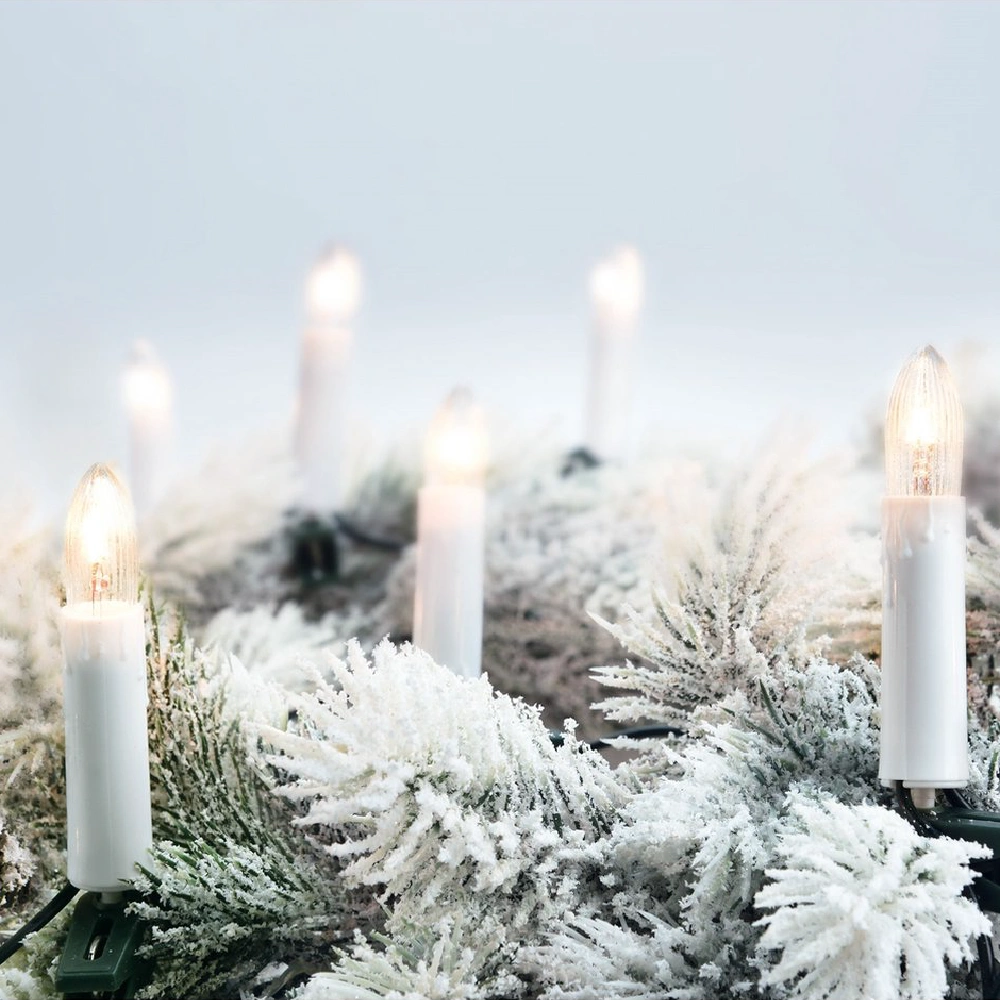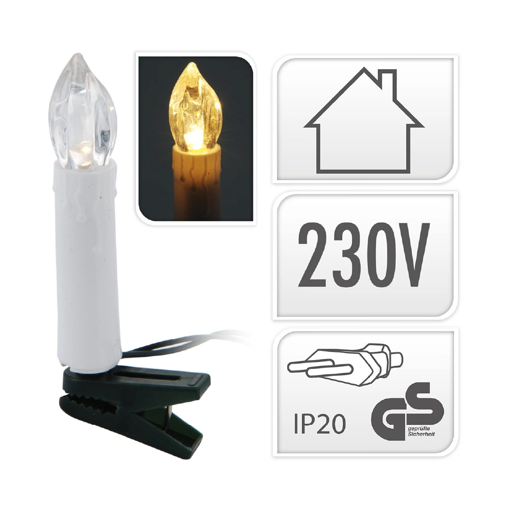 Božićna dekoracija Božićna svjetla 50 LED svijeća s kopčom – toplo svjetlo: Lanac od 50 svijeća s kopčom Topla bijela LED svijeća udaljenost 25 cm duljina 16 m (4 m kabel za napajanje) unutarnja uporaba