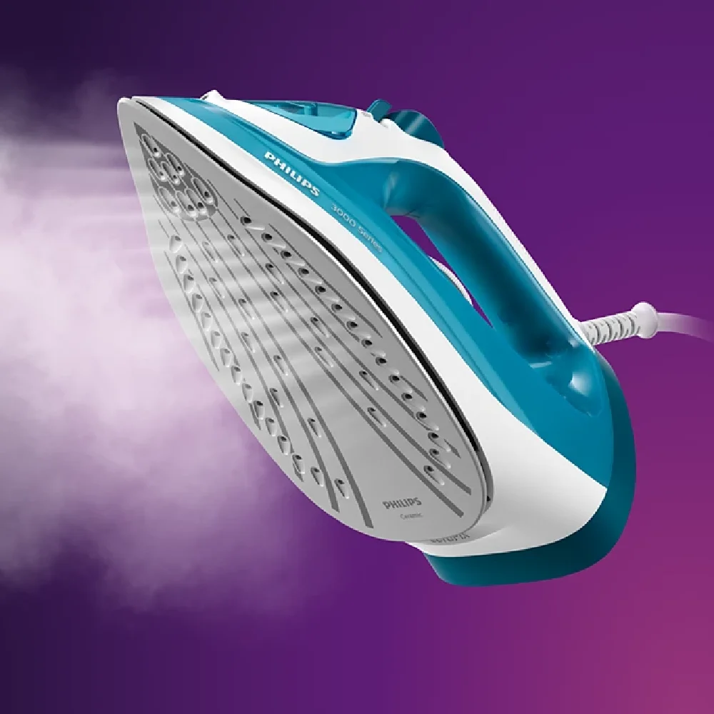 Snažna para za uklanjanje svakog nabora. Naše parno glačalo serije 3000 olakšava glačanje snažnom dodatnom količinom pare koja izglađuje tvrdokorne nabore. Keramičko stopalo za glačanje osigurava glatko klizanje, dok je spremnik za vodu kapaciteta 300 ml dovoljno velik za glačanje manjih količina bez nadopunjavanja.
