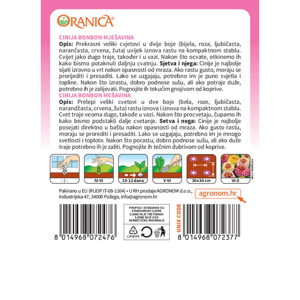 Sjeme cvijeća cinija bonbon – Oranica
