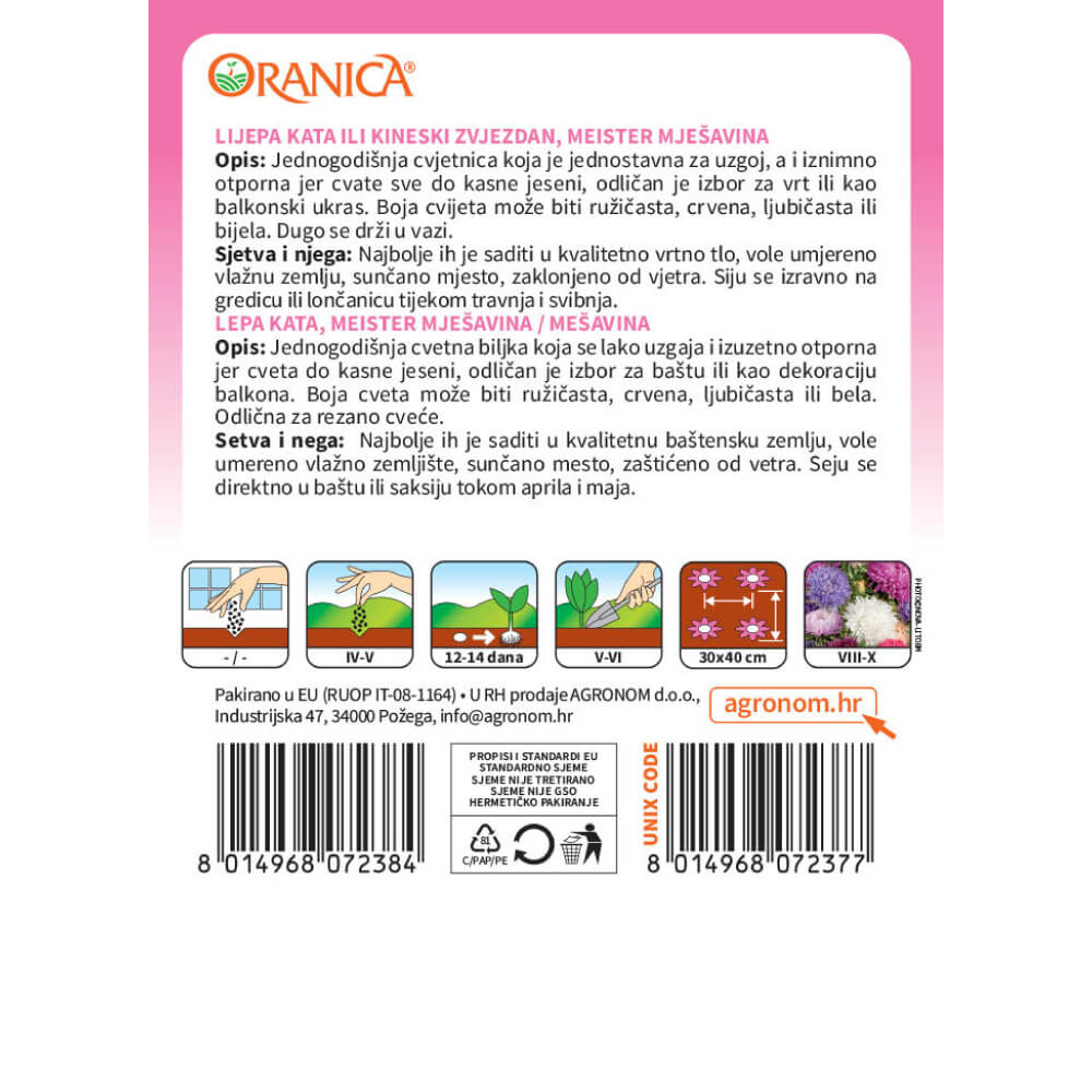 Jednogodišnja cvjetnica koja je jednostavna za uzgoj, a i iznimno otporna jer cvate sve do kasne jeseni, odličan je izbor za vrt ili kao balkonski ukras. Boja cvijeta može biti ružičasta, crvena, ljubičasta ili bijela. Dugo se drži u vazi.