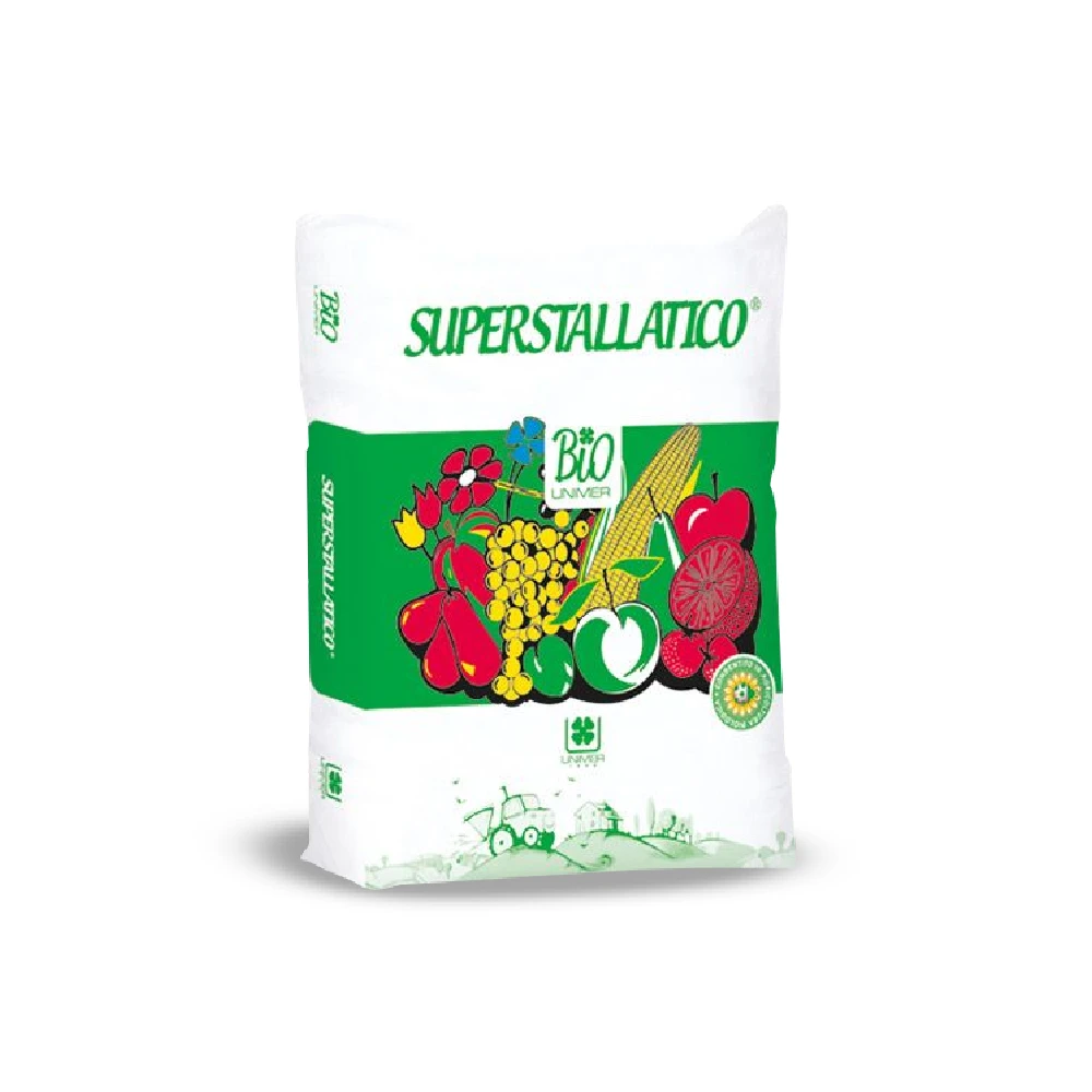 SUPERSTALLATICO je moderna i funkcionalna inačica zrelog stajnjaka baš kao u staroj poljoprivrednoj tradiciji, zadržavajući netaknute kako njegova korisna nutritivna svojstva i sadržaj tako i fulvo i huminske kiseline. Bakterijska flora, tipična za humus, očuvana je dehidracijom na niskoj temperaturi koja mikropeletama daje iznimno smanjen omjer vlage . Proizvod je bez salmonele i patogenih klica.